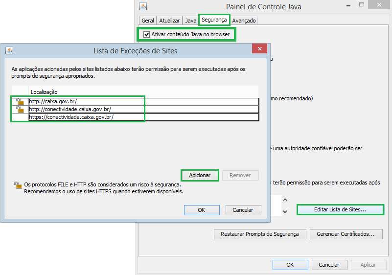 Adicione o site da caixa na lista de confiáveis.