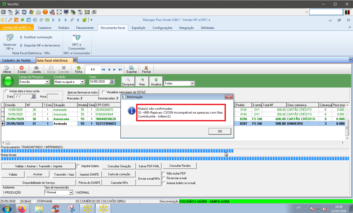 600 Rejeição: CSOSN incompatível na operação com não contribuinte