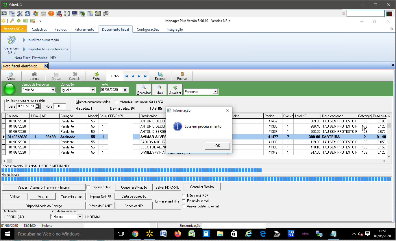 Se ao consultar uma NFe exibir essa mensagem "Falha Enviando a Requisição. Erro: 0 - <" ou "Lote em processamento" provavelmente a Sefaz está inoperante ou inativa.