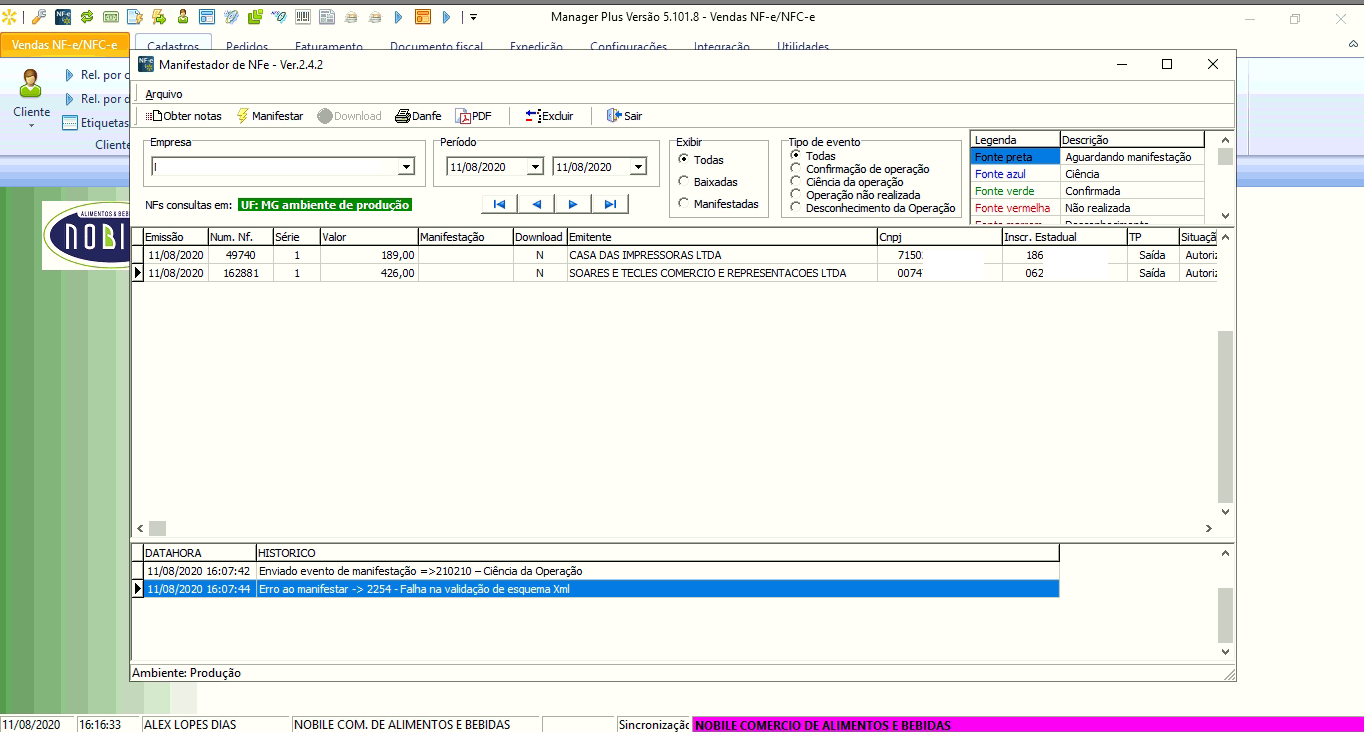Se tentou confirmar dar Ciência de uma NF-e no Manifestador e ocorreu o erro abaixo é porque talvez esteja tentando realizar o procedimento no mesmo dia de emissão da NF-e. "2254 - Falha na validação de esquema XML".