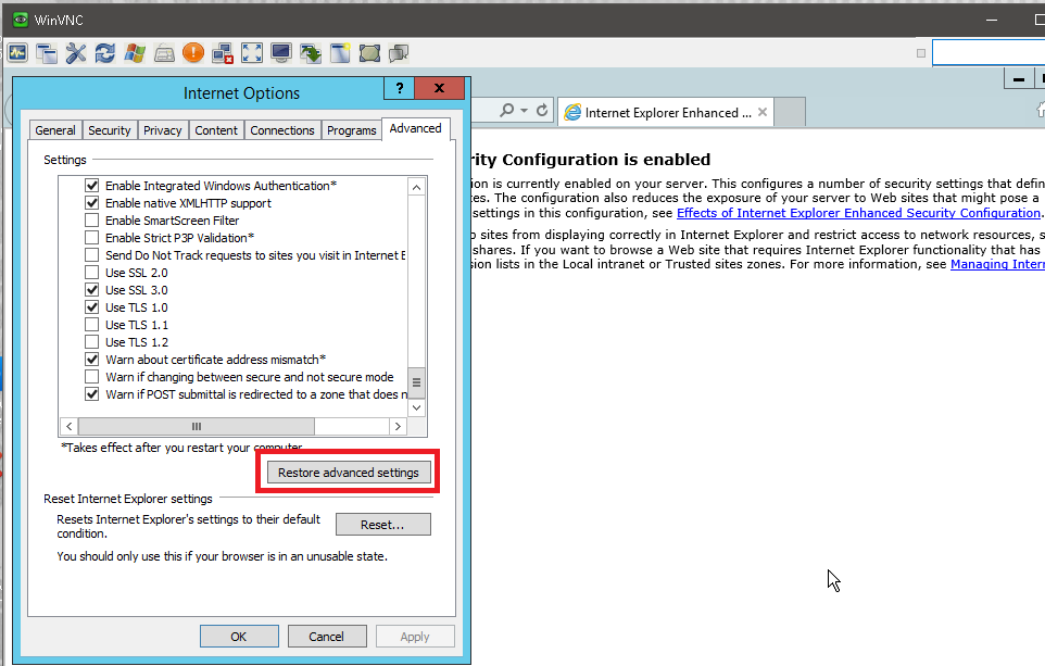 Para resolver instale o certificado também no servidor usando o usuário e senha do administrador.