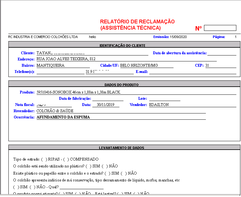 No relatório de SAC(Assistência Técnica) não saiu o código e data, o que fazer?